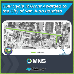 MNS Government Services helped the City of San Juan Bautista secure a $349,588 Highway Safety Improvement Program grant from the California Department of Transportation to enhance pedestrian safety along the historic Second Street Corridor. With a total project cost of $514,100, the initiative will add curb ramps, decorative crosswalks, improved signage, and a historic-style boardwalk to the area.